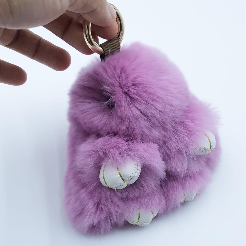 Unpafcxddyig Bunny Keychain Mini Cute artificial Rabbit fur Keychain Car Handbag Keyring 3.9in for Women,light purple