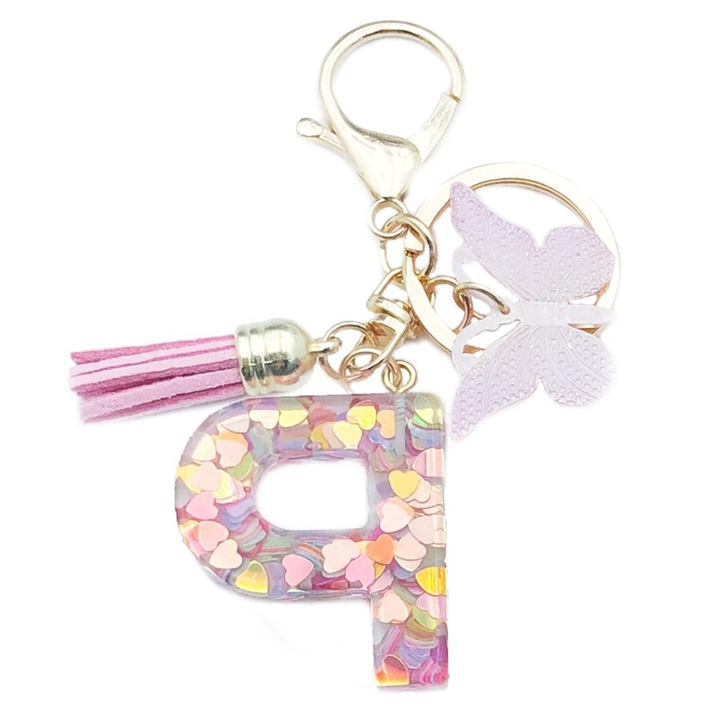 - What You Get: 1PCS Pink Initial letter Keychains with Tassel Butterfly Pendant A-Z Any one