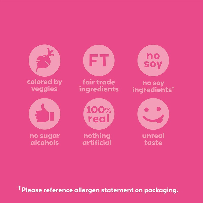 We started UNREAL so everyone can enjoy chocolate snacks without anything un- natural and without all the sugar. So we make ours a totally different way. In small batches. Using only all-natural, no soy ingredients, no sugar alcohols, and way less sugar. And we pay farmers fairly, too. For real. And the taste is UNREAL!