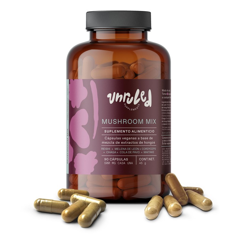 - 𝟲 𝗛𝗢𝗡𝗚𝗢𝗦 𝗘𝗡 𝟭: Si eres de los que quiere todo en 1, ¡prueba el Mushroom Mix de Unruled Foods! Este producto incluye todos nuestros hongos en una sola cápsula. Nuestro exclusivo mix combina extractos de hongo Cordyceps, Melena de León, Reishi, Chaga, Maitake y Cola de Pavo cada uno seleccionado por sus poderosas propiedades adaptógenas y funcionales.