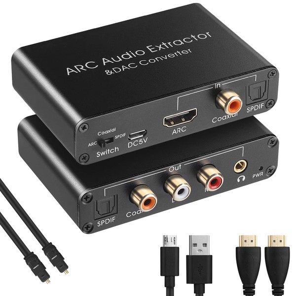- HDMI ARC Audio Extractor: Audio return channel function and audio extraction to digital and analogue signal. This means when connected to HDMI ARC device, such as B. Your TV with HDMI ARC port, audio will return from TV and output to SPDIF, coaxial, L + R RCA 3.5mm