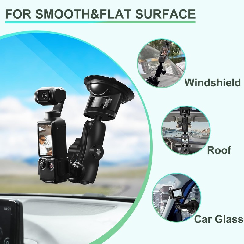 UNSTINCER Suction Cup Mount for DJI Osmo Pocket 3, Action Camera Car Windscreen Window Dashboard Mount for GoPro Insta360 Akaso, Adjustable Holder with 360° Ball Head Magic Arm