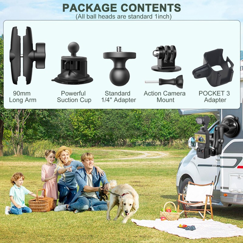 - Compatible with many devices: this multi-purpose camera mount is not only for DJI Pocket 3. The 1/4 inch screw and Gopro adapter ensure compatibility with GoPro and other action cameras. The 1/4" screw is widely compatible with sports cameras (DJI POCKET series, DJI ACTION series, Insta360 series), phone holders, dash cams and other accessories.