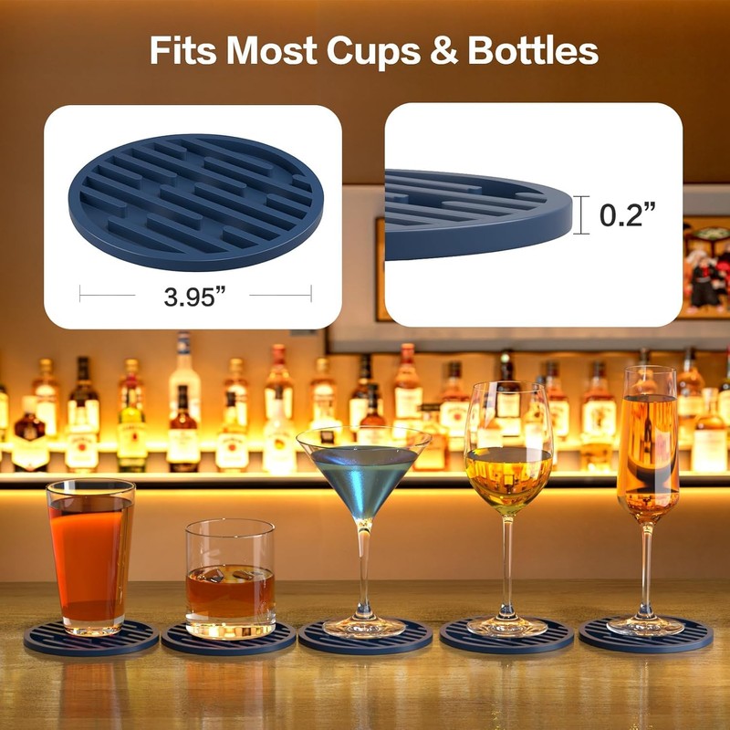 - 【Intelligentes Design】 Die Rillen auf der Innenseite sind fest, so dass Sie sich keine Sorgen um die Stabilität machen müssen. Die mehrzeilige Form funktioniert viel besser, Der Boden von Gläsern aller Größen landet auf den Linien, so dass Ihre Trinkwaren nicht wackeln. Und die Untersetzer sind stabil genug, um sie aufzuheben und in der Spüle auszuleeren, ohne zu kleckern
