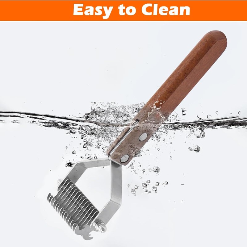 - Doppelseitiger Unterwollkamm mit 14 Zähnen: Ergonomisches Design mit verschiedenen Zahnarten auf beiden Seiten, um sanft und effektiv Verfilzungen zu lösen und das Fell zu pflegen.