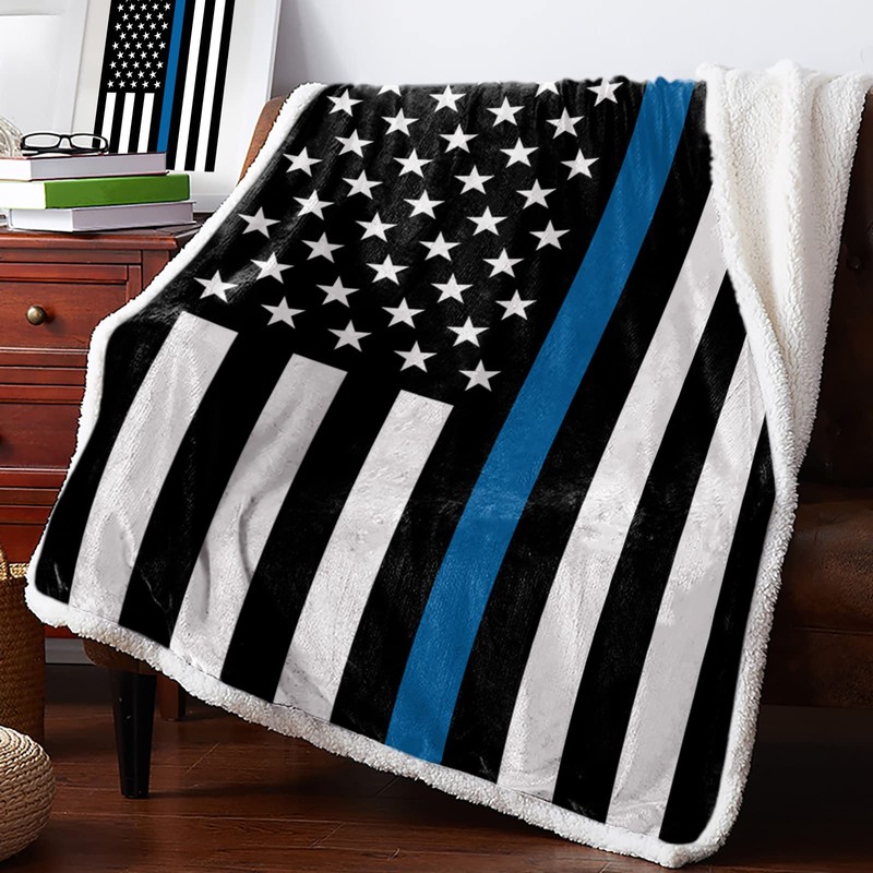 Untra Soft Sherpa Fleece Blanket, Blue Line Flag American Police Flag Honoring Law Enforcement Officers Fuzzy Blankets Warm Thick Reversible Throw Blanket for Bed Sofa Couch Living Room 49'' x 79''