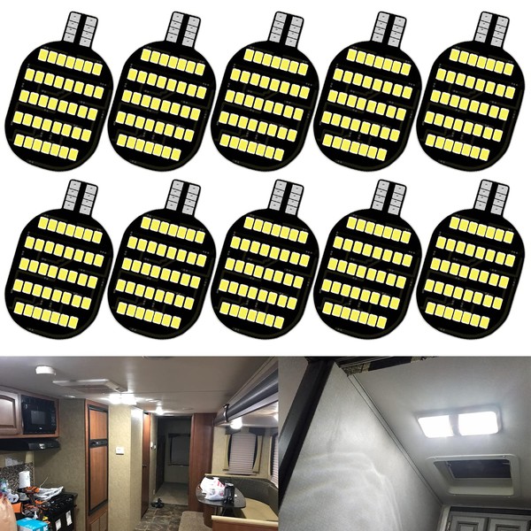 UNXMRFF 921 LED Bulb RV Interior Light Natural White Super Bright T10 922 912 194 LED Bulb Replacement for 12-16 Volt Boat RV Indoor Ceiling Dome Lights, Trailer RV Camper Light Bulbs, (Pack of 10)
