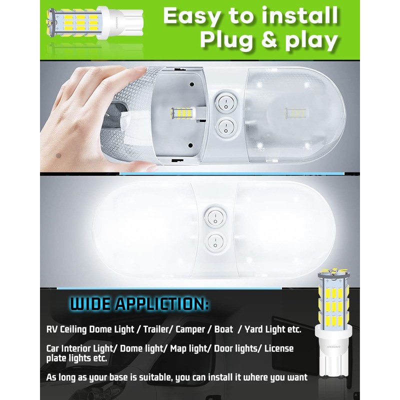 - 【Wide Application】: 194 LED replacement bulbs used for camper light bulbs, 921 rv interior led light bulbs, Trailer, boat, landscaping lights etc. ✔ (Car Interior Light, Dome light, Map light, Door light, Cargo/Trunk light, Glove Box light, License Plate light etc).