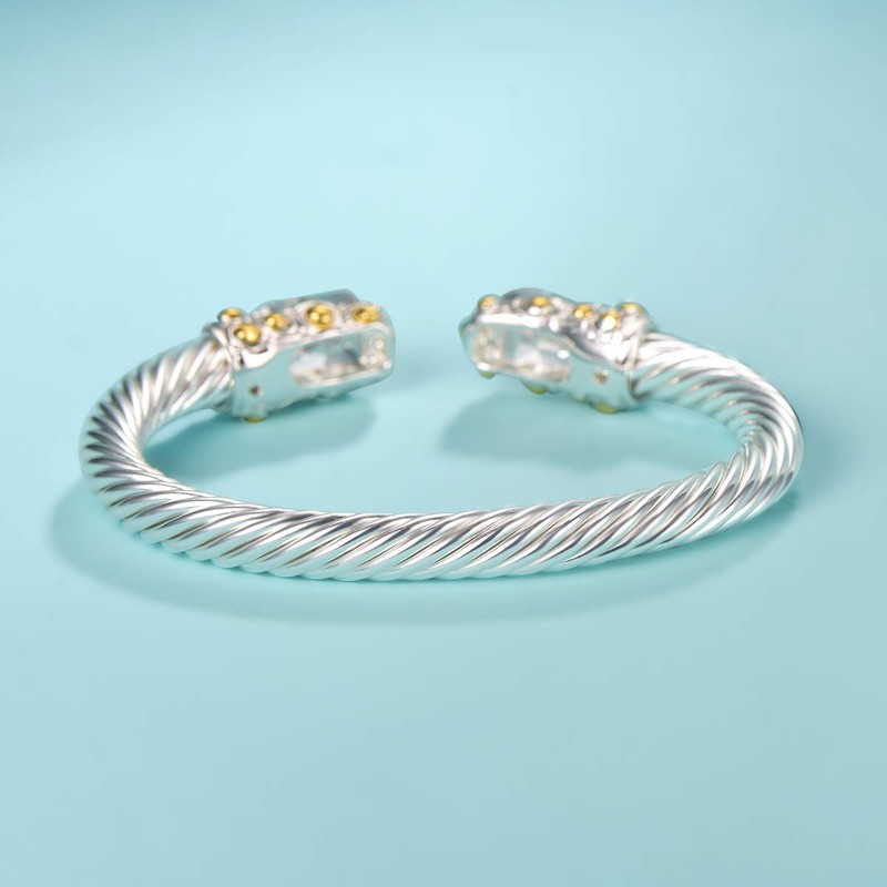 - Unique Twisted Cable Wire Cuff Bangle CZ Stones