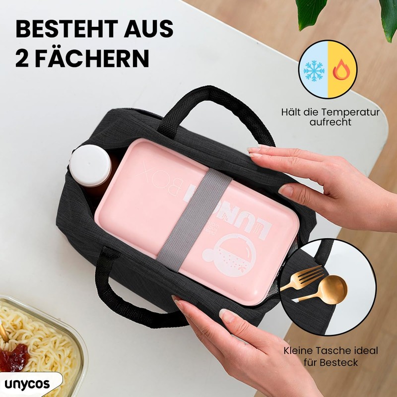 unycos - 7L Cool Bag, Lunch Bag, Thermal Bag with Foil Lining, Insulated Lunch Bag, Rain Jacket, Lightweight, Easy Cleaning, Lunch Box Portable, Bag Work, Travel, Office, Picnic (Black)