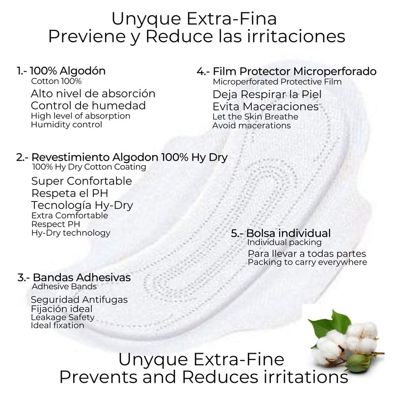 - With its 100% cotton core without synthetic materials and innovative HY-Dry technology, it is able to keep skin drier than classic cotton. They respect physiological PH in the genital area and have a high level of absorption and moisture control.