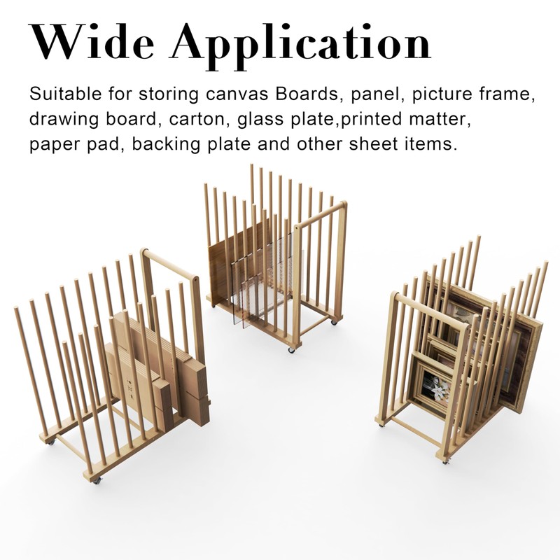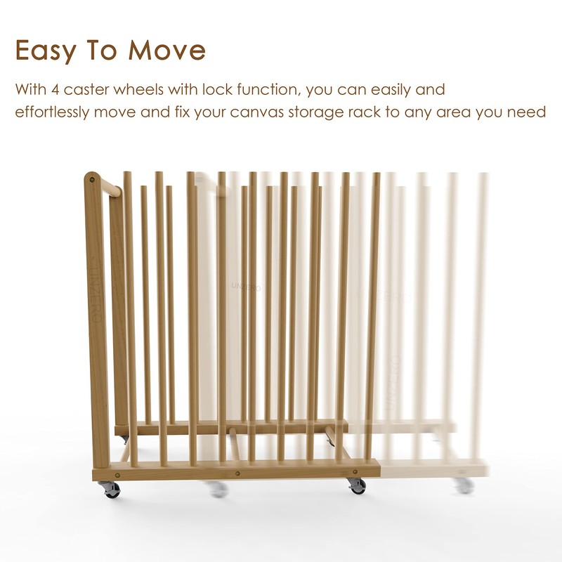 - Easy To Move: With comfortable handle and 4 caster wheels with lock function, you can easily and effortlessly move and fix your canvas storage rack to any area you need