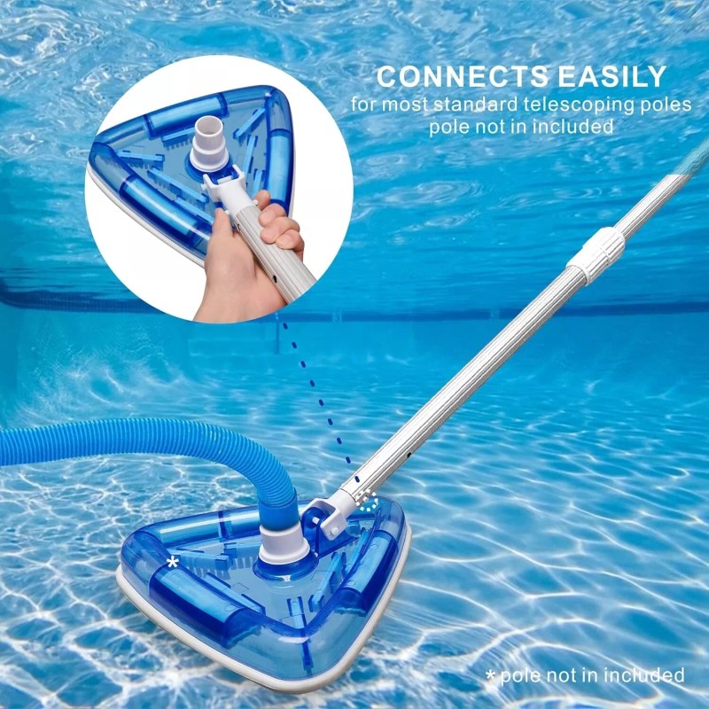 Pool Vacuum Head Bottom Brush, Triangular Weighted Transparent Swimming Pool Vacuum with Swivel Hose Connection and EZ Clip Handle,Bottom Brush