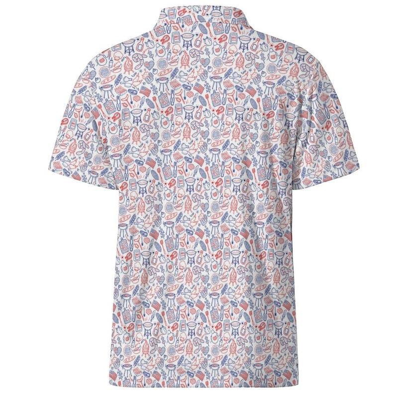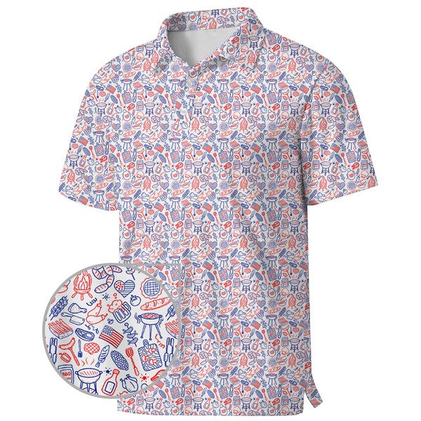 - BBQ Polo Shirts for Men: Mens golf shirt with 3-button neckline for easy on and off. Its generous cut at the shoulders allows for a smooth swing, while the bottom slit design enhances lower body mobility, boosting your performance on the golf course and elevating your style. Featuring BBQ elements prints, it’s a must-have for chef, king of the grill, BBQ Lovers. golf shirt with red, white, and blue hues, shows off your patriotism and makes you stand out at parties or on the golf course!