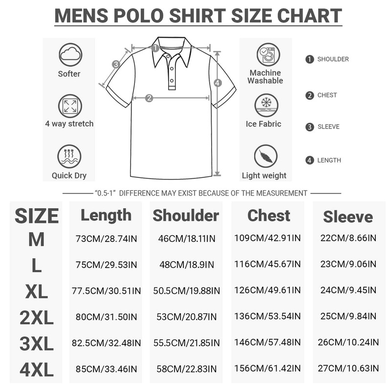 - BBQ Golf Shirt Size: BBQ golf polo shirts for men come in a regular fit and offer six sizes: M, L, XL, XXL, 3XL, and 4XL. Be sure to check the size chart in the product image size before ordering. If you prefer a looser fit for performance, consider sizing up. BBQ golf shirts men big and tall can hand washing and machine washing —just hang to dry and avoid bleach. If you have any questions, feel free to reach out anytime, we're here to help!