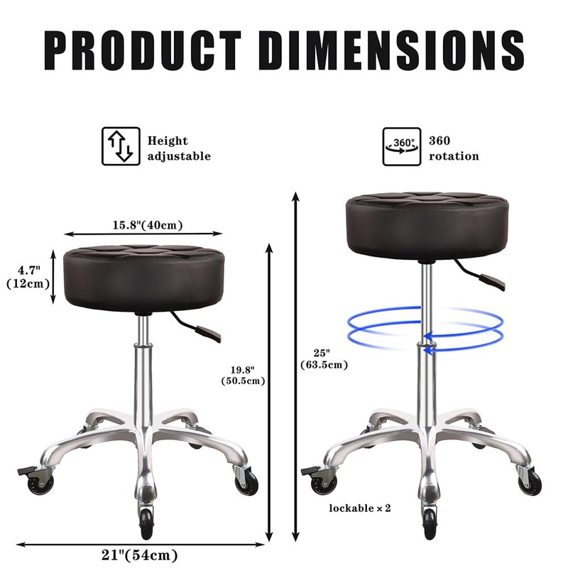 - 【Premium Extra-Thick Cushion & Luxurious Leather】Say goodbye to thinly padded stools with false comfort claims (only 2-3 inches thick). Our rolling stool features a genuinely oversized cushion (4.7 inches thick and 15.8 inches in diameter) designed for all-day comfort. As shown in the video, the scratch-resistant upholstery offers a buttery-soft texture that maintains its premium feel even after extended use.