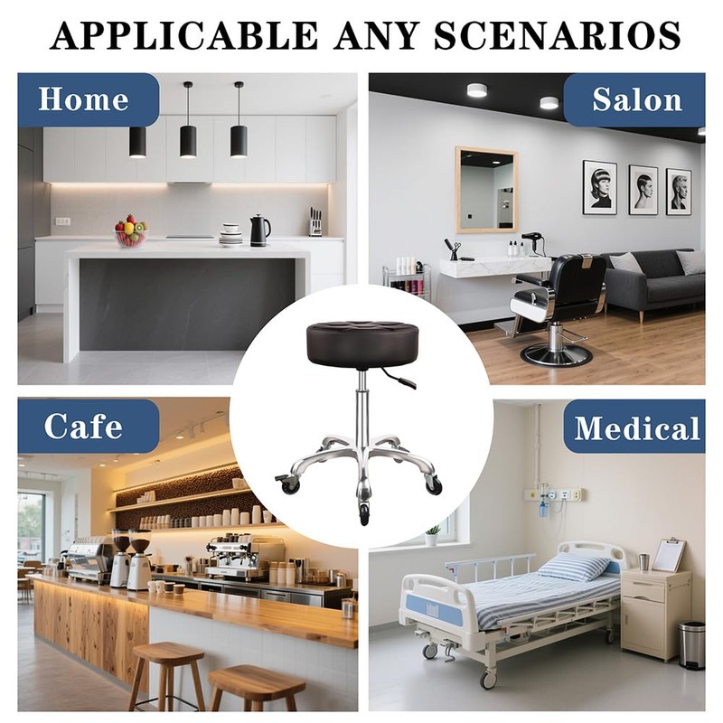 - 【Ideal Height Adjustment Range】With a tested height range of 19.8" to 25", this roller stool perfectly accommodates users from 5' to 6'1". Its versatile design makes it ideal for dental clinics, tattoo studios, salons, classrooms, kitchens, stage performances, and beyond.