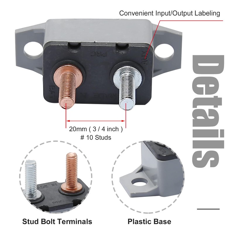- Safety protection: Automatic Reset Circuit Breaker Circuit Breaker 30 Amp has a thermal automatic reset function. When the circuit is overloaded/short-circuited, the overcurrent circuit breaker can protect the power supply without worrying about the fuse burning out