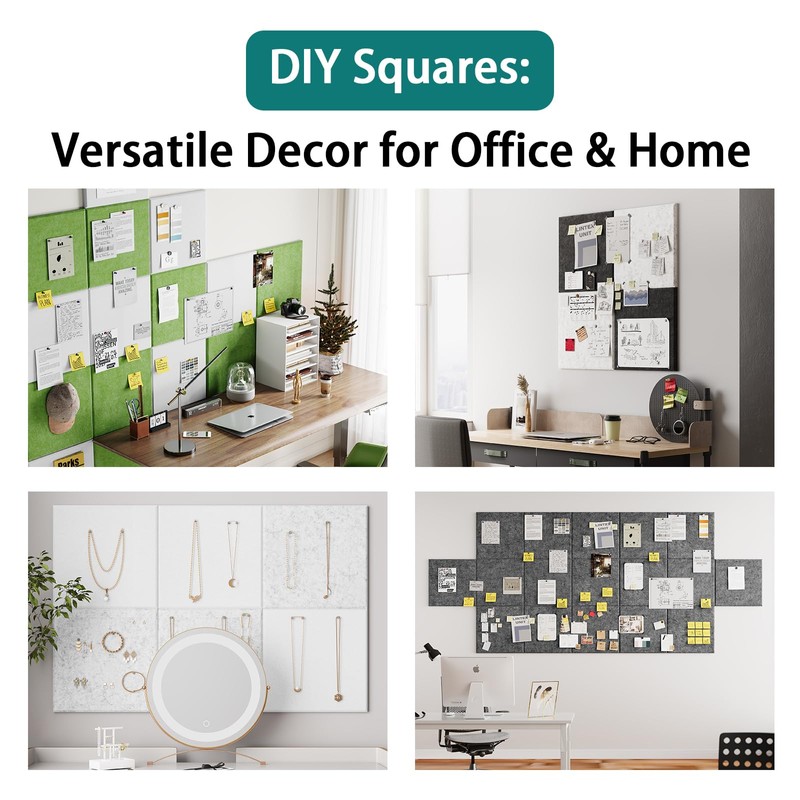 - Extra Large Bulletin Board: This set includes 4 individual 12x12 inch grey panels, offering big coverage. It creates a giant display on any wall, perfect for pinning pictures and photos.
