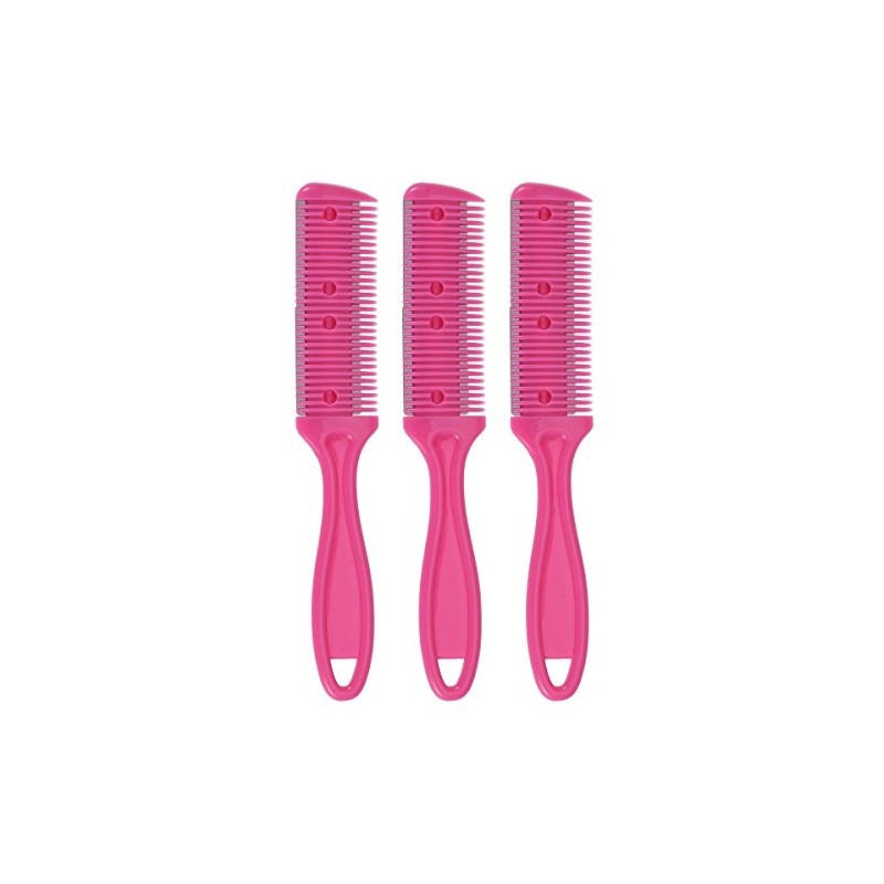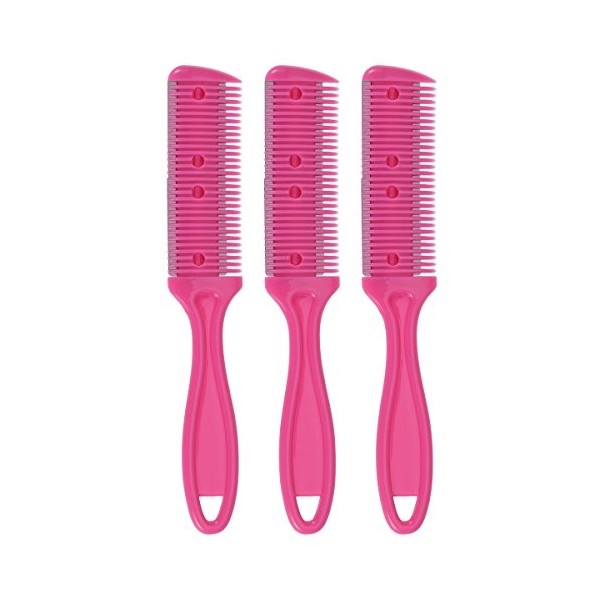 3 x Hair Cutter Comb Double Side Haircut Metal Razor Plastic Hair Comb Cutter Trimmer with Stainless Steel Hair Shaper Razor for Both Long and Short Hair (Rose Red)