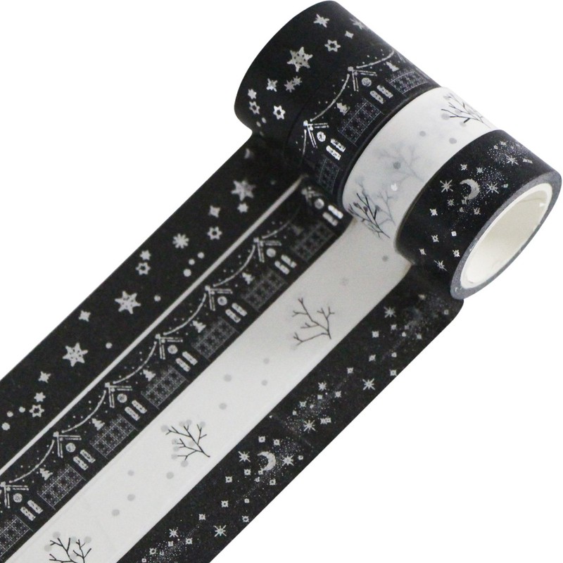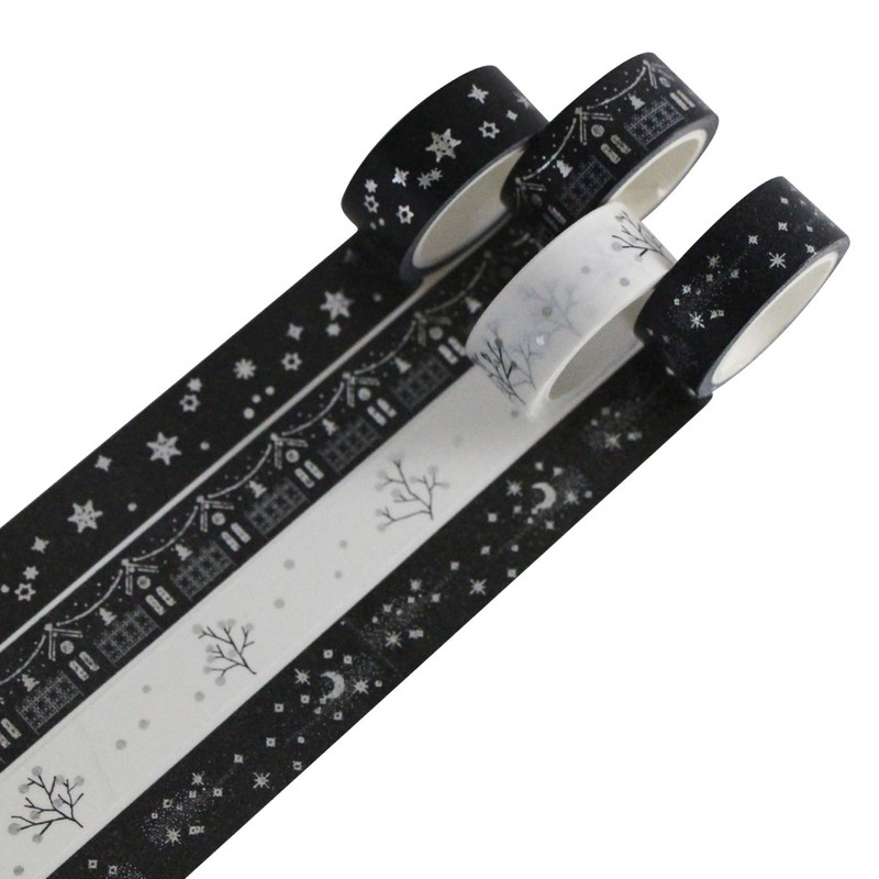 UOOOM 4er Silber Washi Tape Set Masking Tape deko Klebeband Schwarz Weiß Kleb...