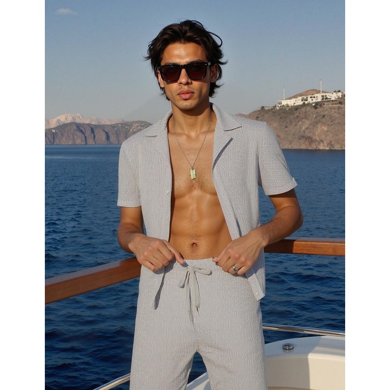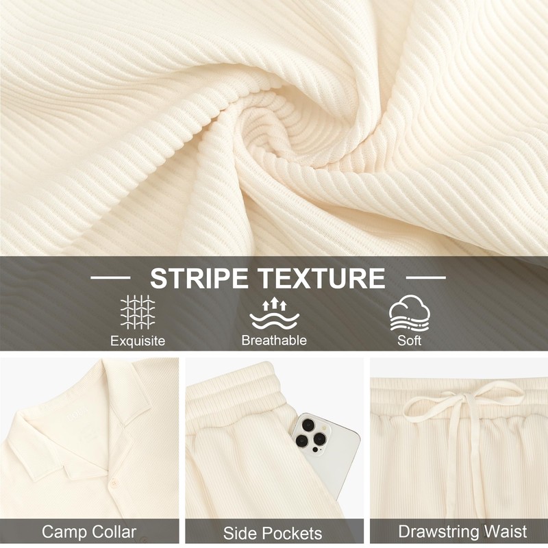 • [Stripe Texture]: The mens short sets 2 piece outfits is made of high-quality, elastic, and skin-friendly fabric, SOFT and COMFORTABLE. The Stripe texture not only gives the clothes a unique texture but also brings visual aesthetic.