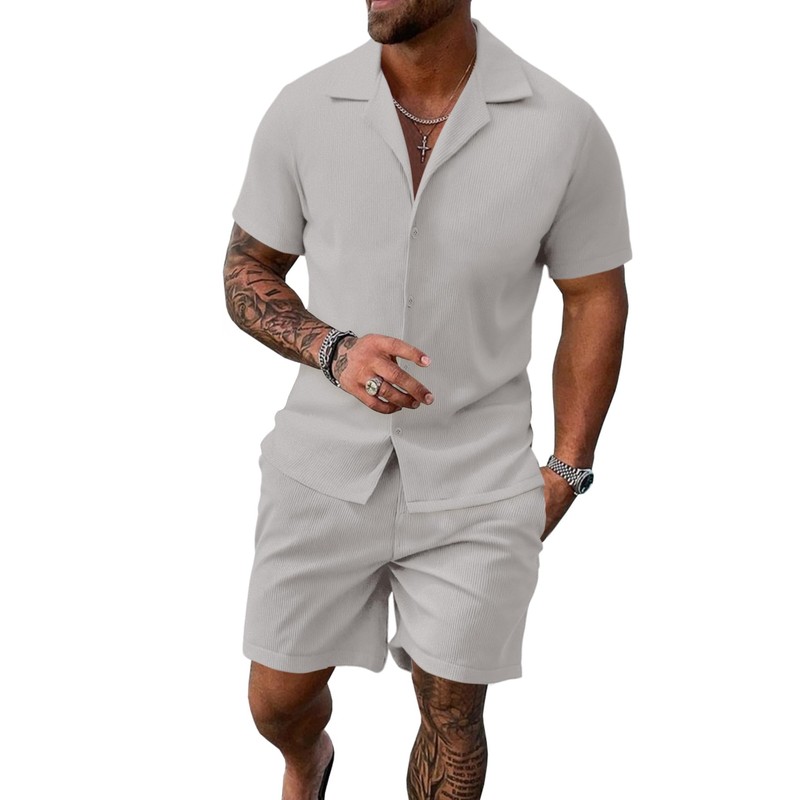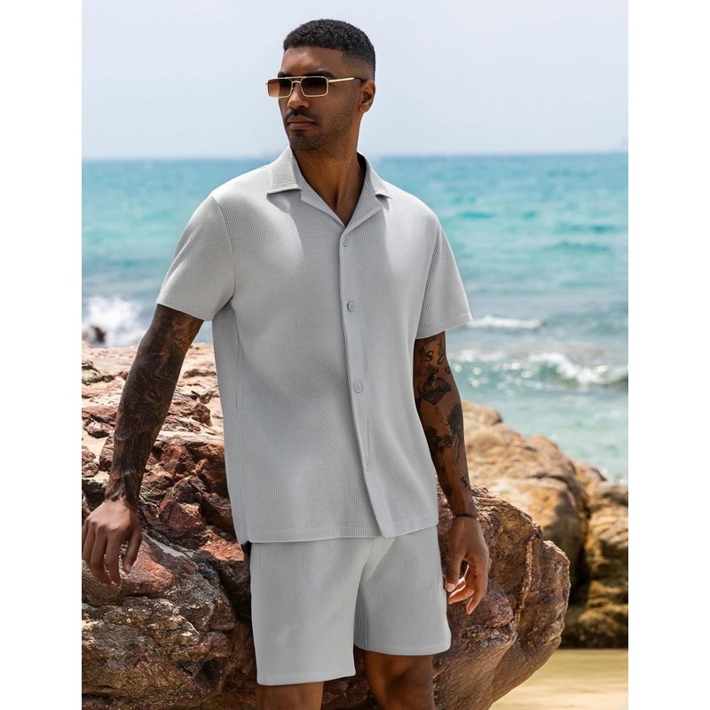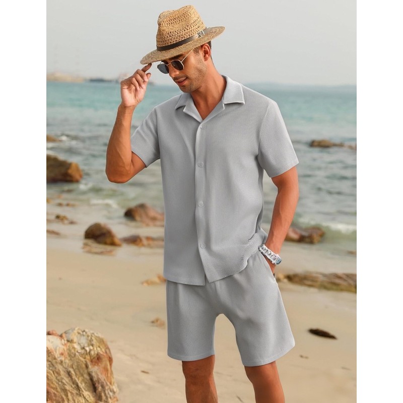 • [2 Piece Design]: This mens 2 piece outfits summer consists of 1* shirts and 1* shorts. The top features a classic button down design. Shorts feature an adjustable waistband for easy wear and two side pockets for essentials