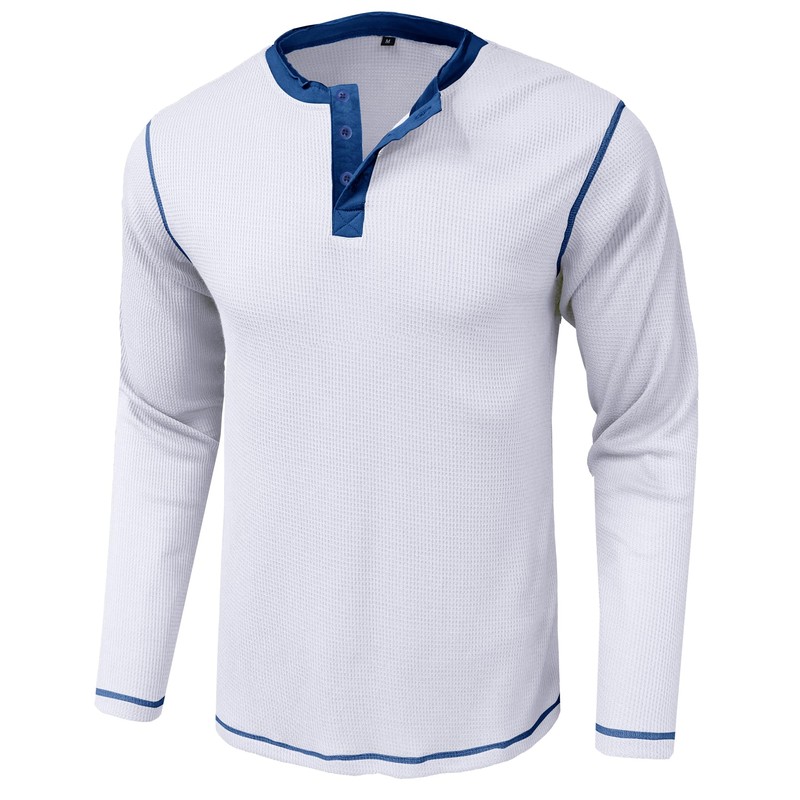 UOUA Men's Henley Shirts Long Sleeve Waffle T-Shirts Casual Button Comfortable Basic Tops White XL