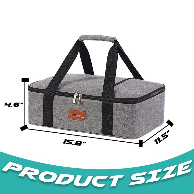 - [Large Capacity] The insulated food casserole tote has external dimensions of 15.8x11.5x8.5 inches (LxWxH) and can accommodate two 9x13 inch baking pans with lids for your daily needs
