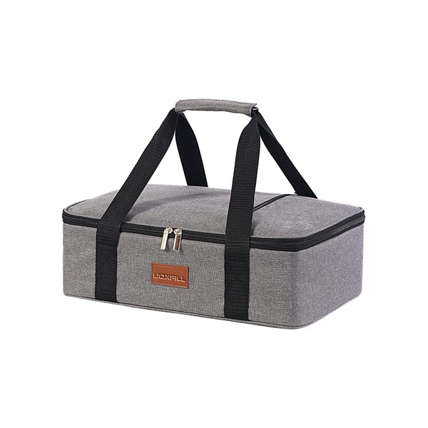 Uoxfill Lunch Bag Insulated Thermal Food Carrier Insulated Casserole Carrier for Hot or Cold Food,Insulated Tote Bag for Potluck Cookouts Parties Picnic, Lasagna Lugger,Fits 9"x13" Baking Pan,Gray