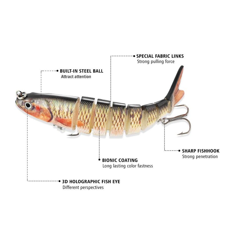 - [8 SEGMENTS LIFELIKE LURES]: The UOZAZE lifelike jointed swimbait 8 segment multi-jointed design enables it to move realistically in the water. This realistic movement entices a diverse array of game fish, making it a must-have for anglers fishing in freshwater and saltwater