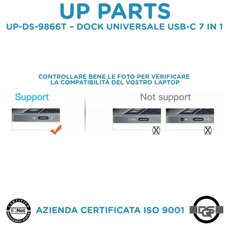 UP PARTS USB Hub Docking Station UP-DS-9866T 9 in 1 USB C 87W Power Supply 2 Ports HDMI 4K VGA USB 3 5GB 2 Ports US B 2 Card Reader Audio 3.5mm Italian Company