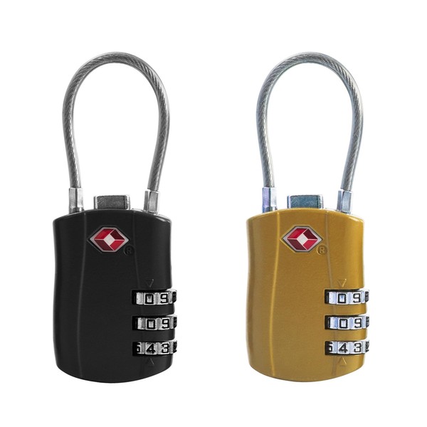UP Security TSA Locks for Luggage, Small Padlock Combination with Cable, Luggage Locks TSA Approved, Combo Padlock with Code, for Travel Suitcase, Gym Locker, Gun Case, Backpack Zipper (Black+Golden)