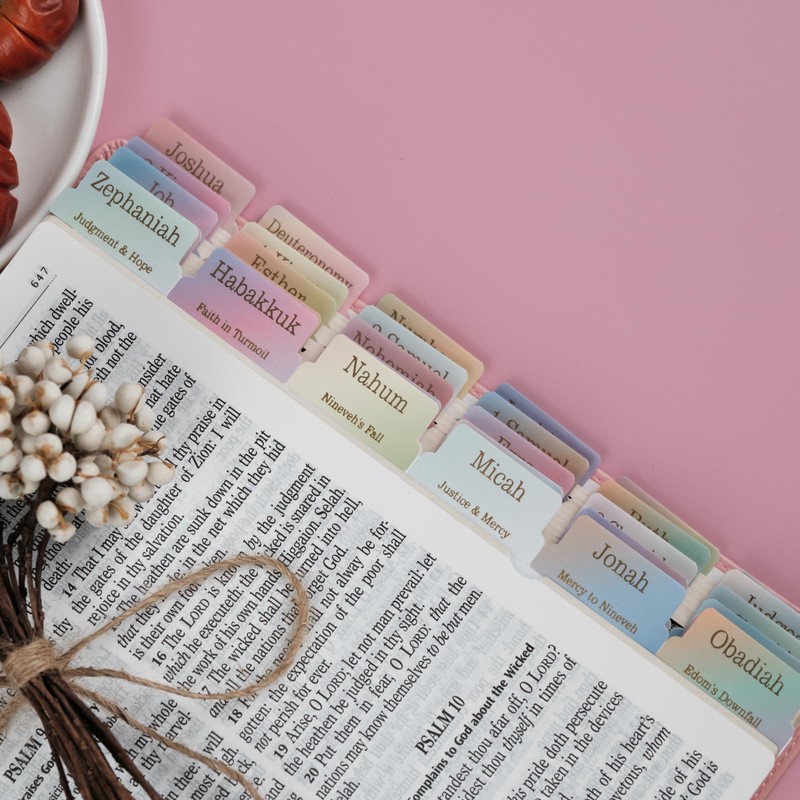 - Unique: Bible tabs with summary descriptions and Rainbow Gold Foil Embossed Lettering.This is the ideal christian gi.ft. These unique Bible index tabs make a great gi.ft for your girlfriend, mum, kids, or anyone who loves beautiful things in life.