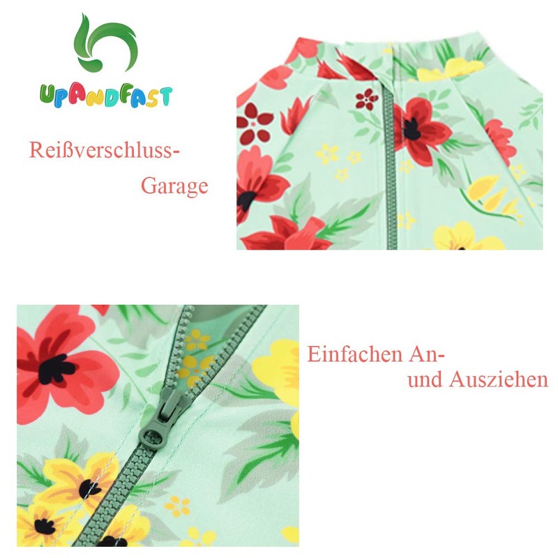 upandfast Baby Swim Costume with Sun Hat, UPF 50+ Swimwear for Baby, light green