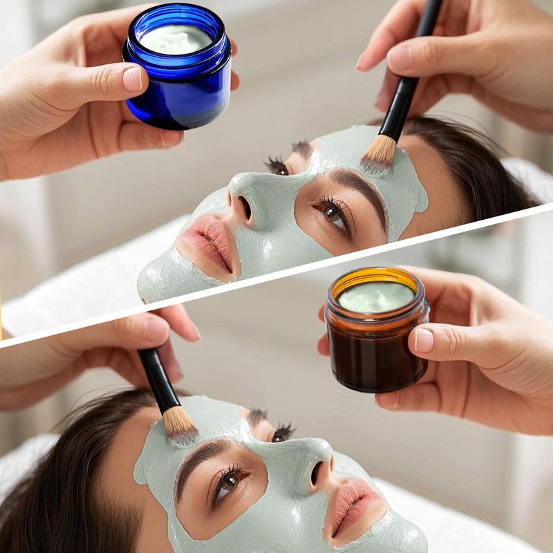 - Glass for UV Protection: These 2oz amber and blue glass cosmetic jars are made from premium thick glass that effectively blocks 99% of harmful UV rays. Ideal for storing light-sensitive contents like essential oils, serums, face creams, and CBD balms, they help maintain product stability, potency, and color over time—perfect for natural skincare brands and DIY creators.