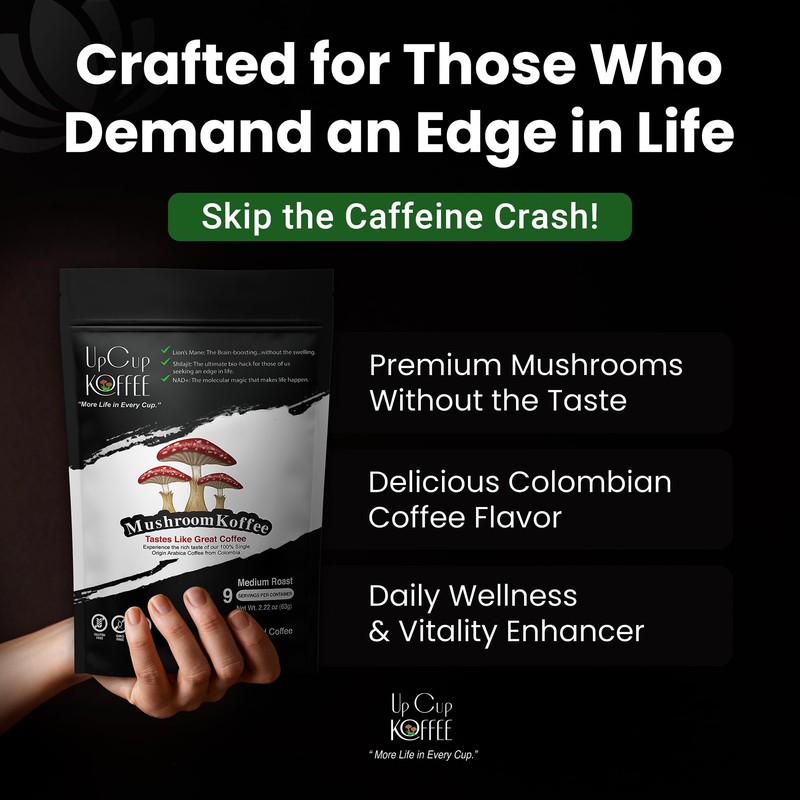 Experience the transformative benefits of UpCup Koffee's Mushroom Coffee, a unique blend that combines premium Colombian coffee beans with powerful superfoods like lion's mane mushroom and Himalayan shilajit. Crafted for those who seek both delicious flavor and wellness, this all-natural lion's mane mushroom coffee coffee offers a rich, satisfying taste without a hint of mushrooms or the dreaded caffeine crash. With the added boost of NAD+, UpCup Koffee provides a harmonious balance of energy and cognitive support, making it an ideal choice for your daily routine.