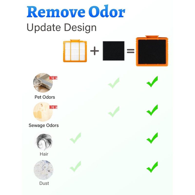 - Remove Odors - Update design. The activated carbon helps odors to keep your home fresh. Make filters not just remove dust.