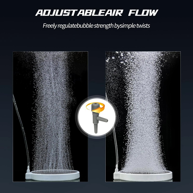 Ultra-High Dissolved Oxygen Rate: The nano aquarium bubbler can release smaller, denser and more uniform bubbles which makes double oxygen dissolving rate in water. Ideal to increasing oxygen levels, lowering CO2 and raising PH in your fish tanks and hydroponic growing systems