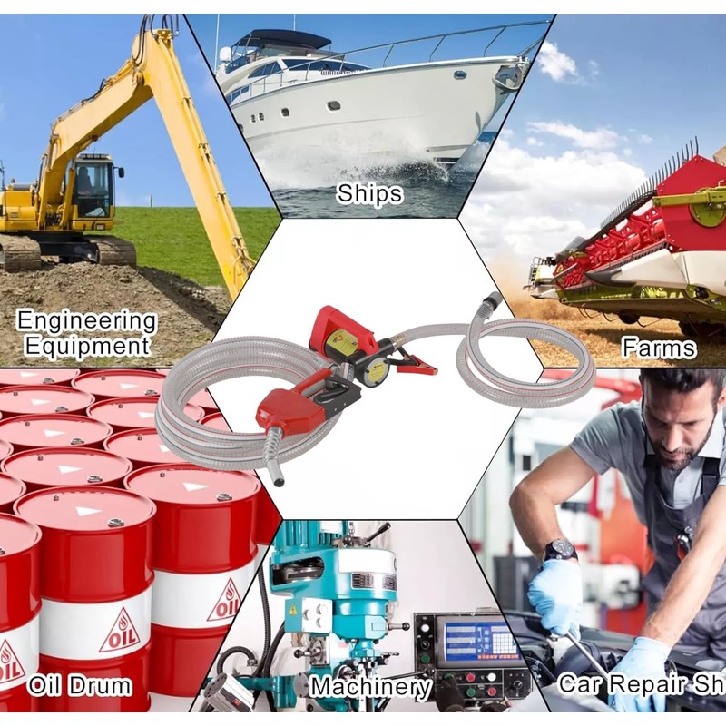 - 12 Volt Diesel Transfer Pump is ideal for use in car repair shops, ships, farms, construction sites, industrial setups, engineering machinery, and other vehicles and equipment
