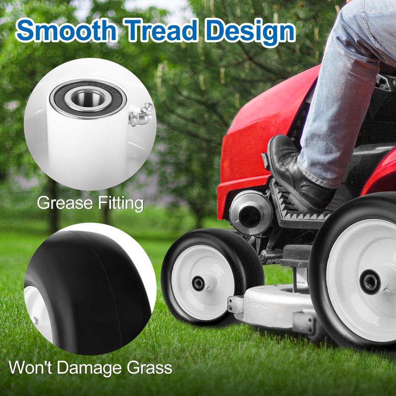 - 【Smooth Turf Tread】Zero turn tires are designed with smooth tires to minimize impact on your grass. Great for professional-grade lawn care, providing a smooth, vibration-free mowing experience. 13x6.50-6 solid tires have bounce and touch of pneumatic tires for stability and comfort. Please lift tires off ground when not in use for long periods of time