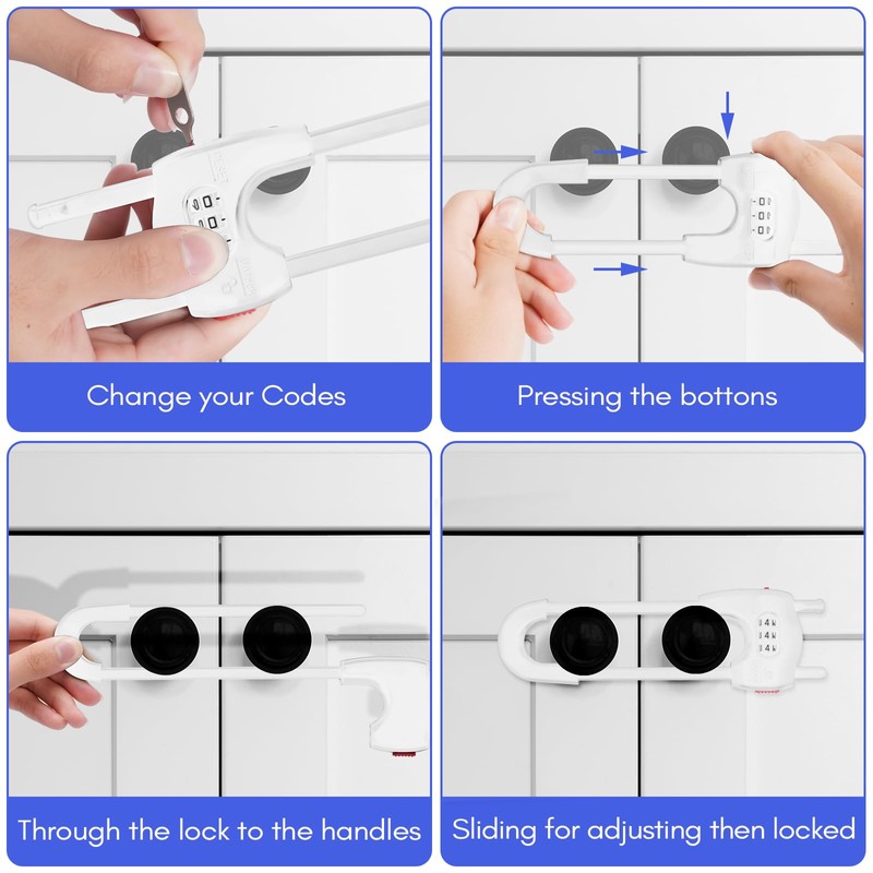 - 【UPDATE LOCK】 Portable U-shaped locks that can be used over and over again without damaging on furniture, can even be taken on travel. The password Settings provide additional protection so that even older kids cannot open it