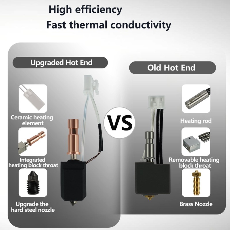 - Easy installation: Quick replacement hot end design, integrated throat heating block, easy to replace