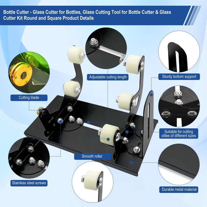 - 【Glass Cutter- Glass Bottle Cutter Cut Glass Bottles with Ease】This upgraded glass cutter for bottles makes it easy to cut round, square, and oval bottles of various sizes, from wine and beer bottles to mason jars and more. Glass cutters tools- bottle cutter designed with 5 smooth support wheels, a sharp cutting blade, and a reinforced base to keep bottles stable for more accurate cuts every time. From beginner to pro, YDHFTYS bottle cutter makes bottle cutting easy and fun.