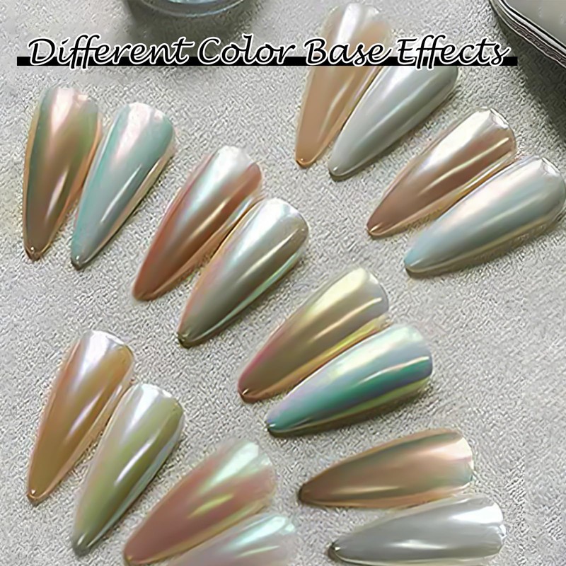 - White Pearl Nail Powder: GJNL ice transparent aurora nail powder is brighter and shiny, chrome powder has its own glitter, bright and transparent high glossy effect. The powerful pearl effect will show a slight flashing blue light visual sense with the change of light intensity. Make it shines like pearls in the sea.