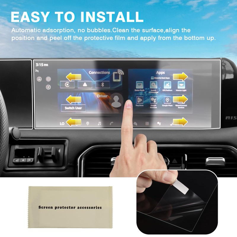 - 【Perfect Fit, No Bubbles】ONLY designed for 2025 Nissan Armada(SV, SL, Platinum, PRO-4X, Platinum Reserve) Screen Protector 14.3-Inch Navi&Dash Screen Accessories. Cut out perfectly, Fits well, Install easily, NO bubbles or residuals left behind.