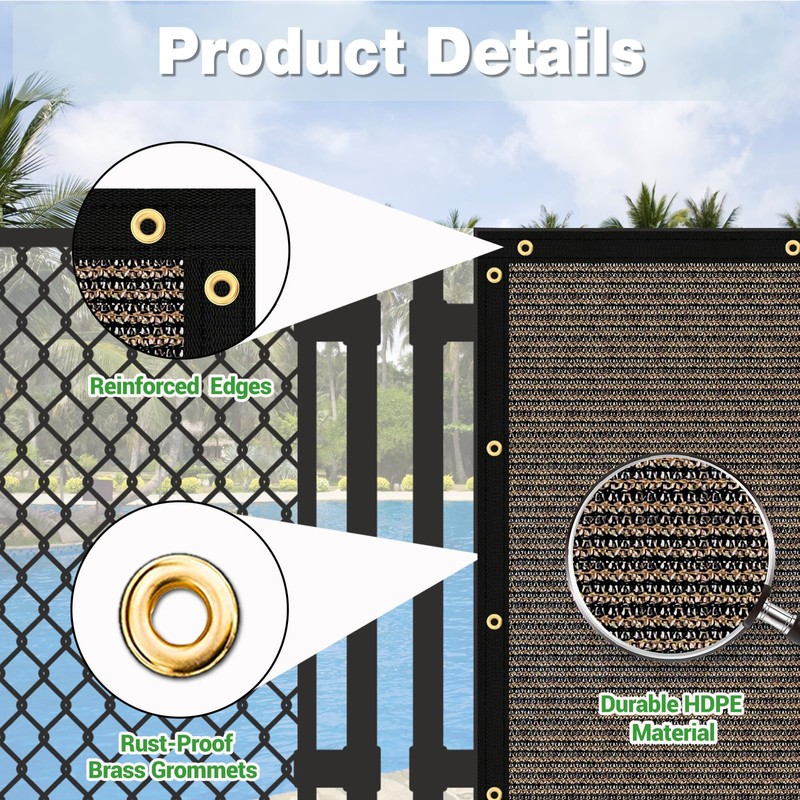 • Sturdy and Enduring: Featuring reinforced edges and anti-rust brass grommets; our UPGRADE fence privacy screen is designed to withstand the elements; providing lasting performance and exceptional tear resistance