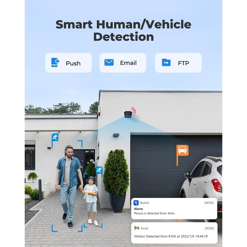 - HUMAN VEHICLE DETECTION WITH SMART ALERTS: This PoE IP camera can identify people and vehicles in terms of their shapes, which minimizes unnecessary alarms such as animals or shadows. It can also specify the type of detection when sending motion alerts to you. You can know what happened by just glancing at the phone screen.