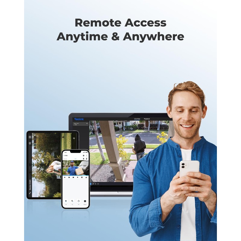 - REMOTE ACCESS & SMART PLAYBACK: With simple and intuitive Reolink App without extra fee, check what’s happening in your home or office anytime and anywhere. Quickly filter videos by person/vehicle events, and locate the moments you need by the timeline, all within a few clicks.