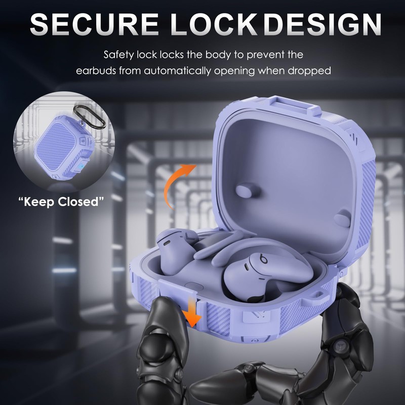 [Upgrade Secure Lock] for Beats Powerbeats Pro 2 Case Cover, LDSXAY Carbon Fiber Shockproof Protective Cover for Powerbeats Pro 2 2025 with Cleaner Kit & Carabiner (Purple)